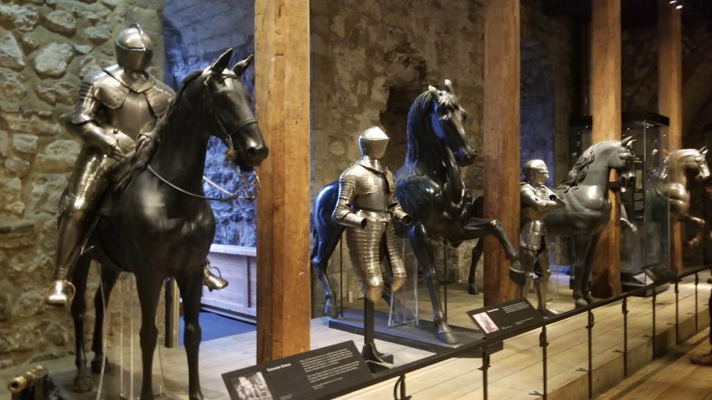 When you first arrive you walk over the moat and can continue into a courtyard or walk up on the ramparts. The first are we visited was the Tower’s Mint, which as where the coins were made for the realm within the safety of the walls in the tower from c1279 and until 1810. Since tampering with coins was considered treasonous many thieves and forgers were deterred from continuing with their nefarious actions – but as we learned in the Mint they weren’t all deterred. Keep walking along and you arrive at the medieval residence. The Tower was once the residence for the royal family back in the medieval times of the 1200s. Like most medieval residence, the monarchy rarely lived for long periods of times, but that doesn’t mean that it wasn’t “Fit for a King” in anticipation of their visit. Lavishly decorated and stylishly furnished, the residence and the Great Halls of the residence could be a busy place depending on the night. While wee didn’t get to visit the crown jewels, we were able to walk close by the current residence for the royal family, which had a guard out front! I cannot imagine being so “important” that a guard would need to be in front of my residence! The little lawn was so quaint in front of the apartment but I have to admit seeing such a large, old historic building surrounded by central London was a little off putting. Seeing a monarch’s apartment being guarded even though no one was actually in the apartment was also strange. It was extremely interesting to see history and culture/tradition in action though! The guards also walked in shifts around the entrance to the crown jewels. The jewels are actually underground and heavily guarded. Seeing the uniforms and “changing of the guards” (not the same as at the castles where the royals currently are actually living) was extraordinary!